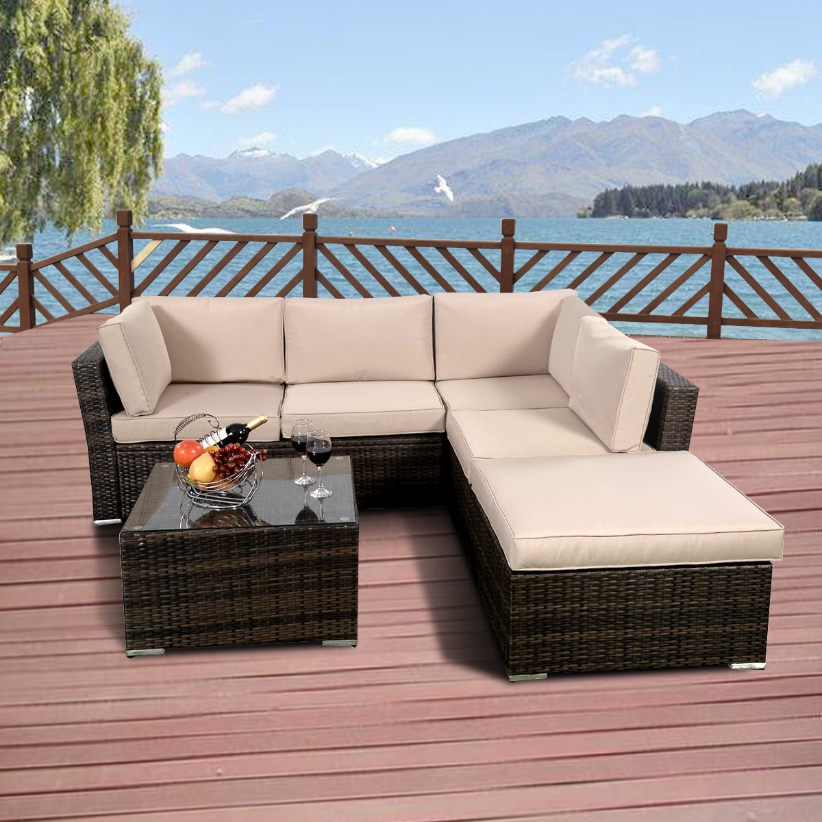 Find a wide selection of patio furniture to shop from, including outdoor furniture patio sets, decor and more— available at walmart canada at everyday low prices. Equipped with 2 armless sofas, 2 corner sofas and 1 coffee table, the patio furniture set has enough space for your visitors. This patio furniture set can be freely rearranged into different combinations to suit any space, you can enjoy the leisure time with your family and friends in the patio, garden, poolside and so on.