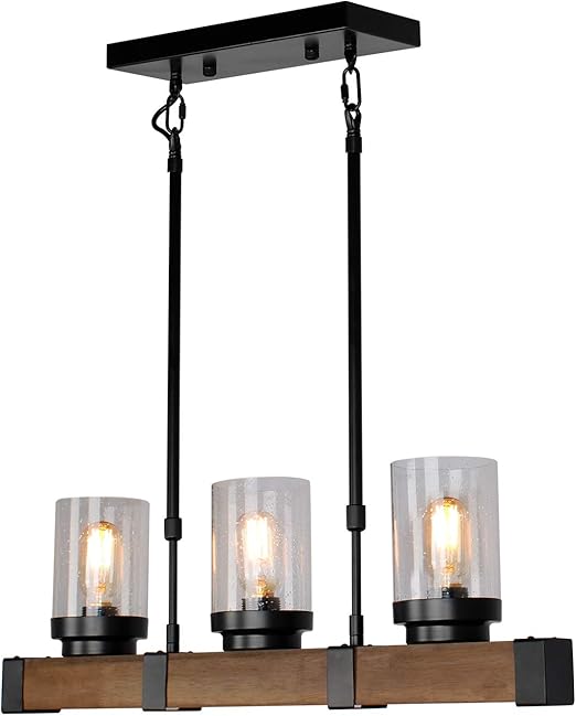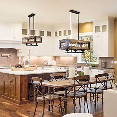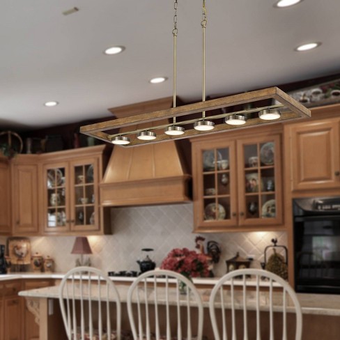 Oak, pine, and cherry are among the most popular options. 5 lights wooden kitchen island light chandelier with black iron cage frame this pendant light mixes cage frame design and texture wood to create a popular appearance and capture your eyes. The rectangle frame design and. The most common kitchen island light material is metal. The circular shape and fabric shade will complement your transitional home decor beautifully.